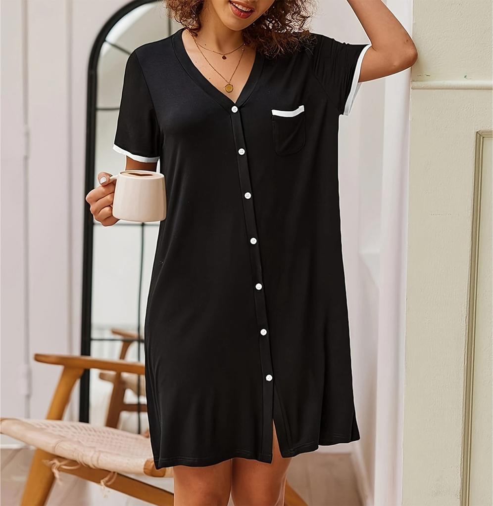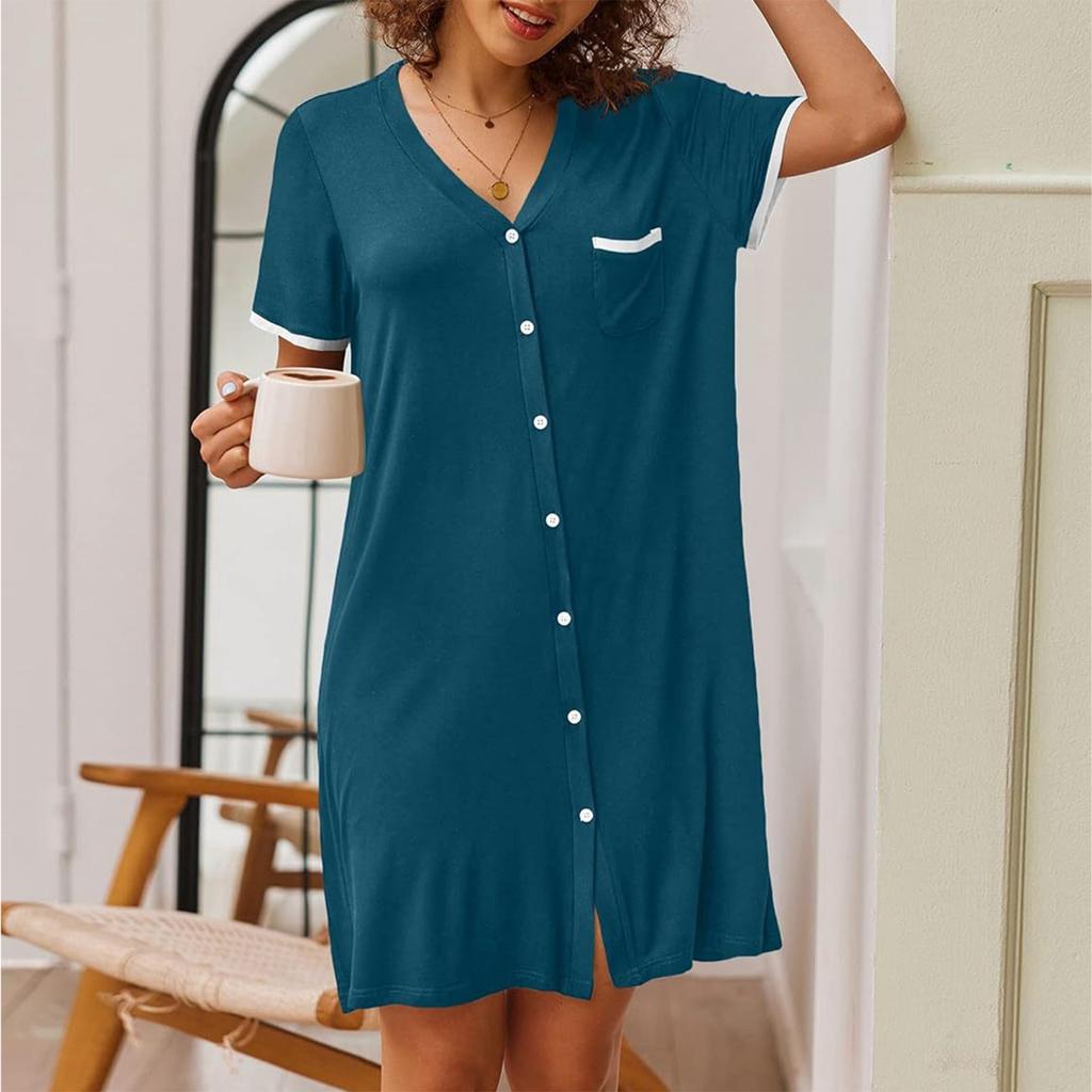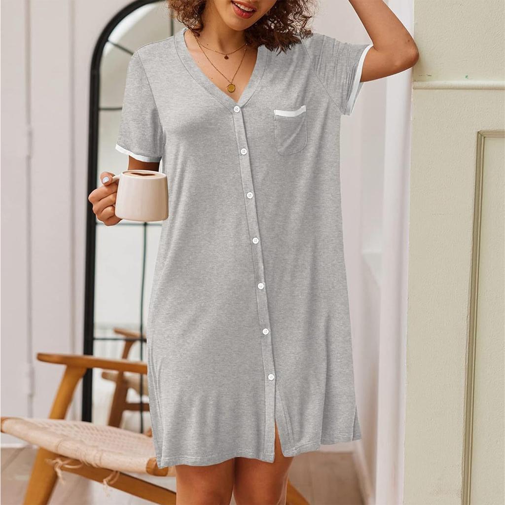 Женское свободное повседневное удобное платье-мини с V-образным вырезом, короткими рукавами и контрастной расцветкой, для дома, минималистичное, летнее