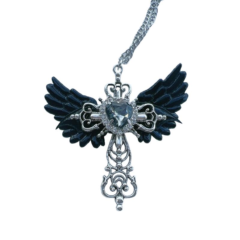 Готические сексуальные аксессуары ожерелье с подвеской в виде крыльев и креста для женщин колье в форме сердца панк-оберег ювелирные изделия