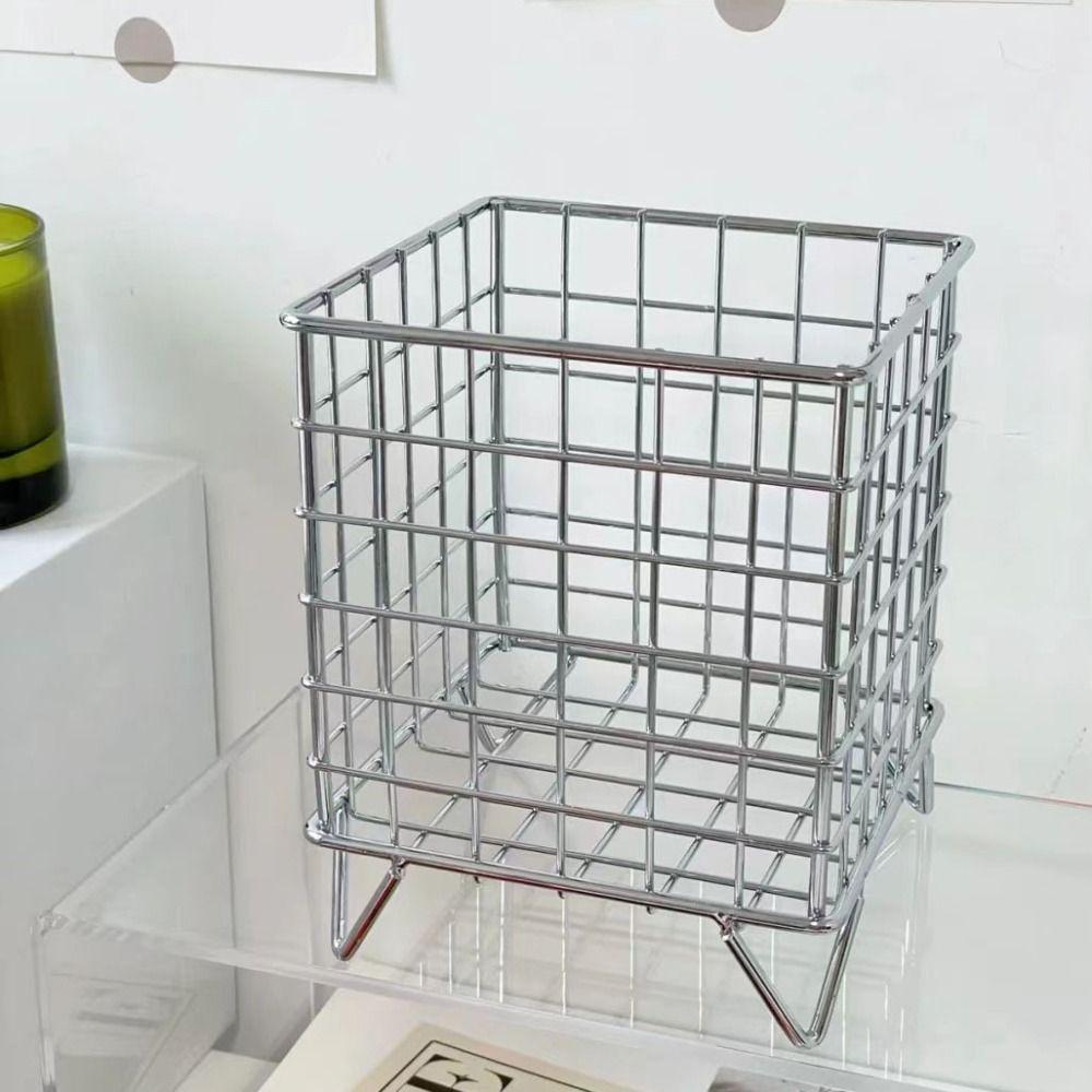 Silver Pink Office Desk Organizer Desktop Basket Makeup Sorting Storage Pen Holder Storage Basket