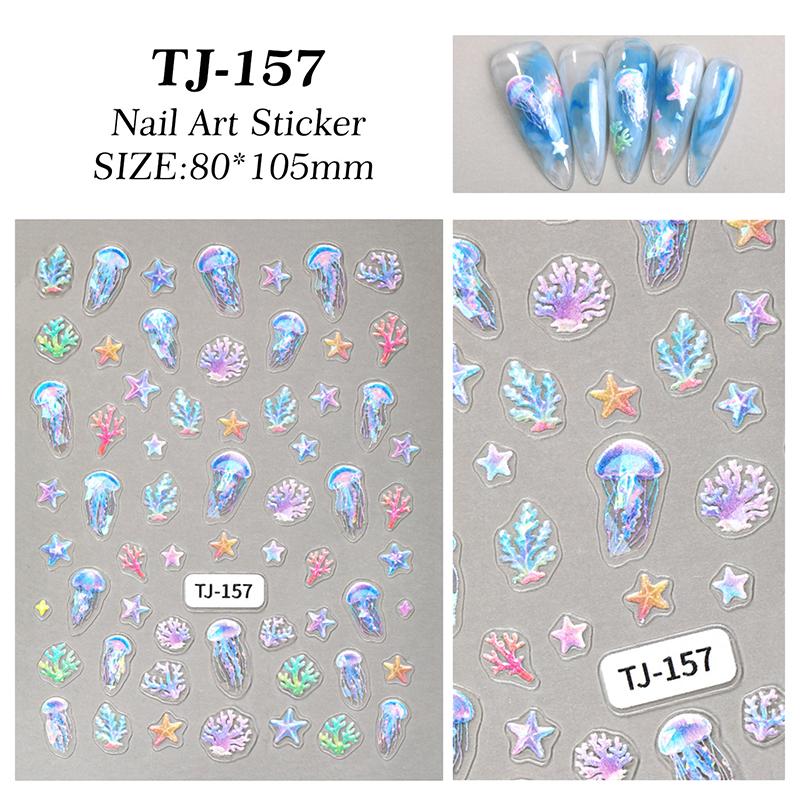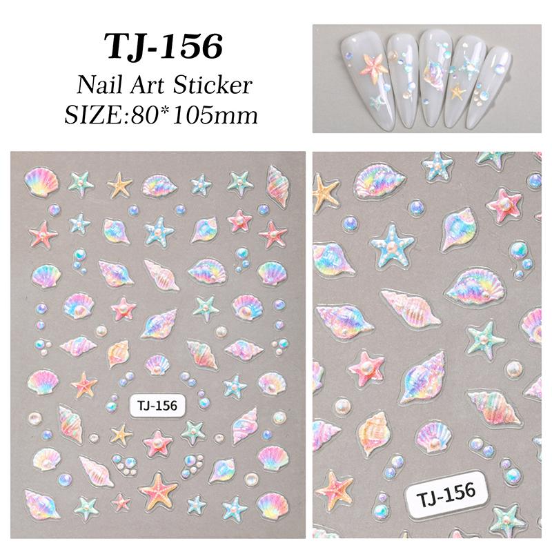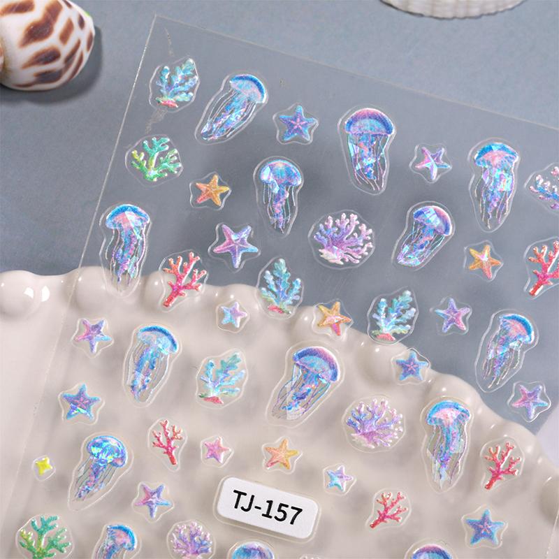Мультяшные океанские наклейки для ногтей рельефные 5D летние морские звезды ракушки цветные наклейки для ногтей украшения аксессуары сделай сам