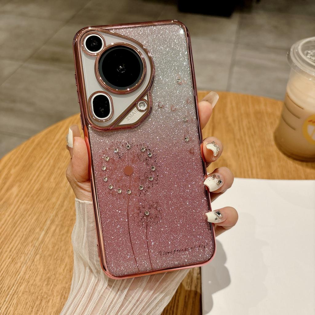 Гальванизированный чехол для телефона Huawei Pura70ultra с бриллиантами «Точка одуванчика», Подходит для HONOR 80 Градиентный блеск Mate60