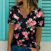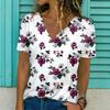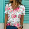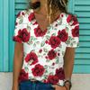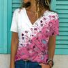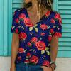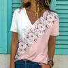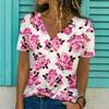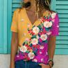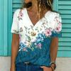 Летний топ с V-образным вырезом, 3D-принтом с красивым цветочным узором, модная повседневная женская футболка с коротким рукавом