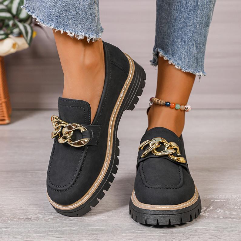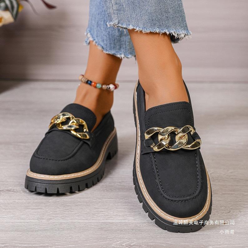 Модные сто ретро женские лоферы - Стремя на одну ногу Толстая подошва Мягкие эластичные Увеличение роста Удобные Популярные Неустающие туфли