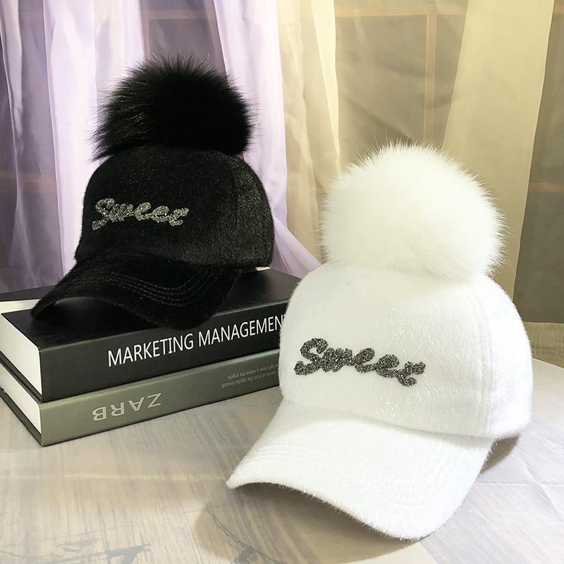 Осенне-зимняя теплая шапка женская бейсболка с искусственным помпоном, стразами и надписью в виде морского конька — купить товар онлайн с бесплатной доставкой по всему миру!