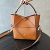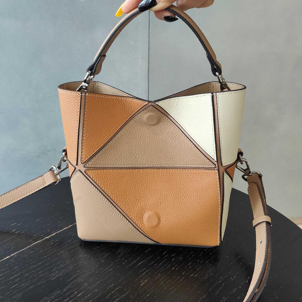 Кожаная нишевая сумка-ведро нового дизайна, сумка через плечо, мессенджер премиум-класса с геометрической вставкой, женская сумка для通勤