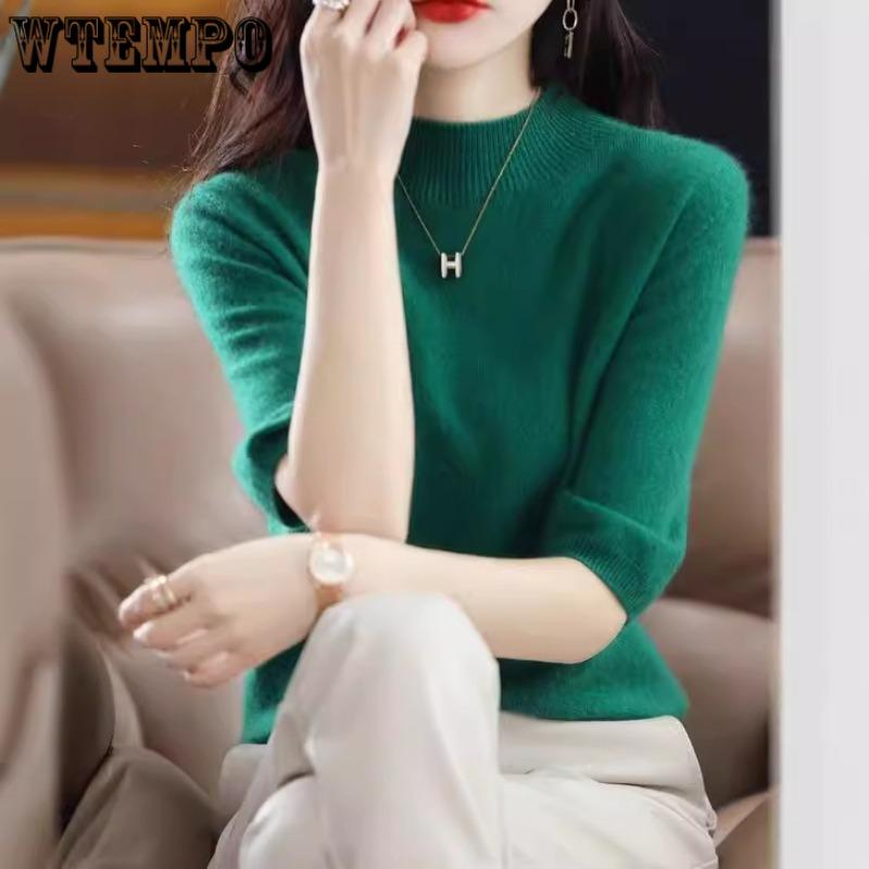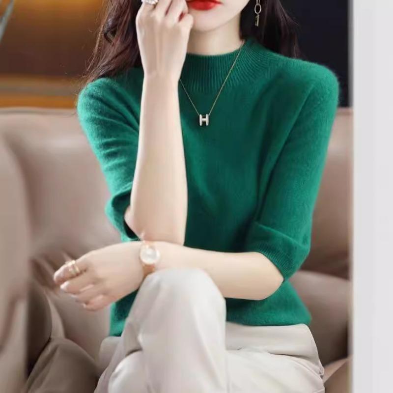 Женский вязаный свитер с круглым вырезом, со средним рукавом, вязаный свитер корейской версии, внутренний низ, топ