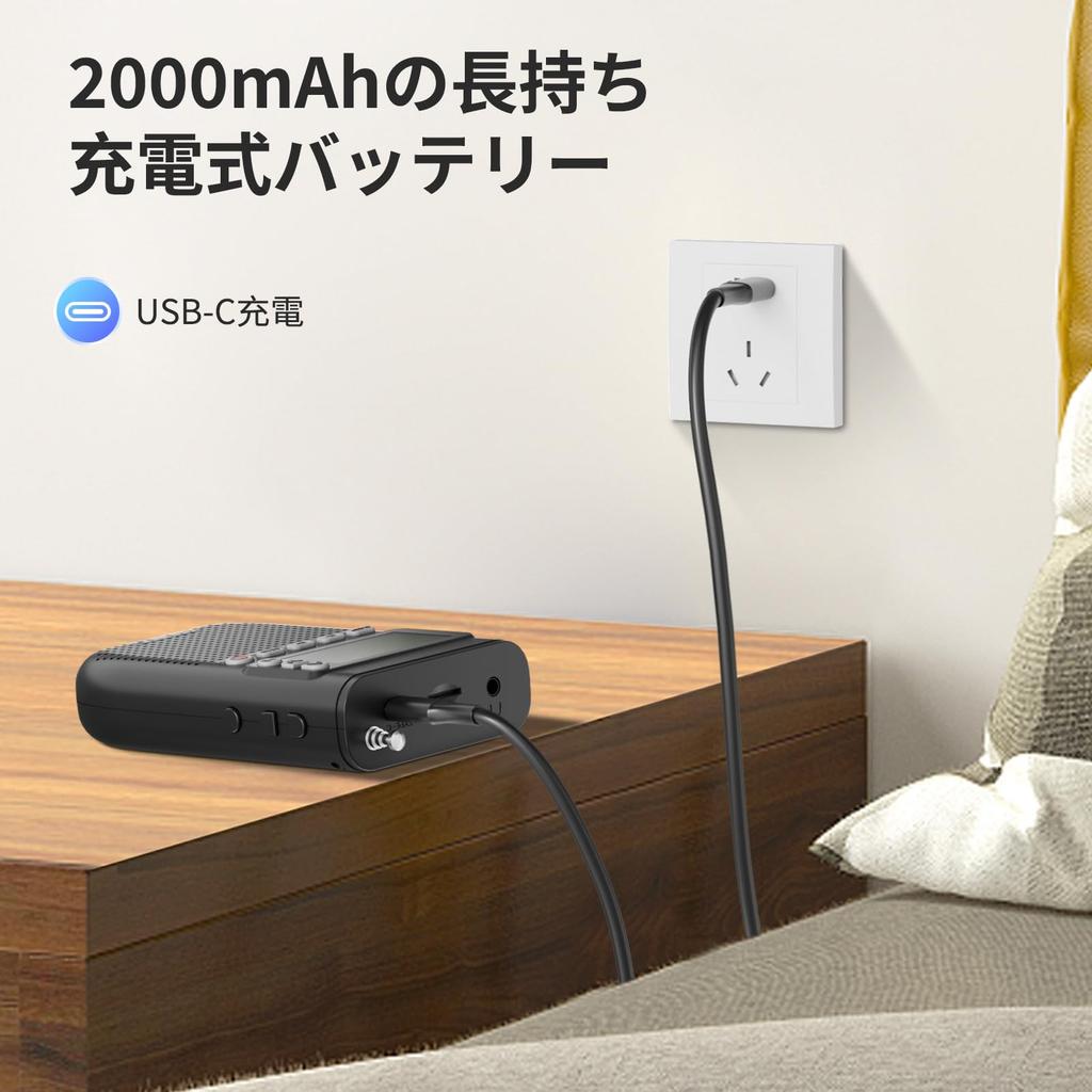 [Компактный и Вместительный] Размеры: 11.6 x 6.8 x 2.7см, Вес: 145г. Этот транзисторный радиоприемник маленький и легко помещается в карман или сумку.. Он также оснащен кнопкой блокировки для предотвращения случайного срабатывания.. Его литиевая батарея высокой емкости 2000 мАч обеспечивает надежную зарядку. Его можно легко зарядить с помощью прилагаемого кабеля USB-C, и он совместим с зарядными устройствами, компьютерами и мобильными устройствами.