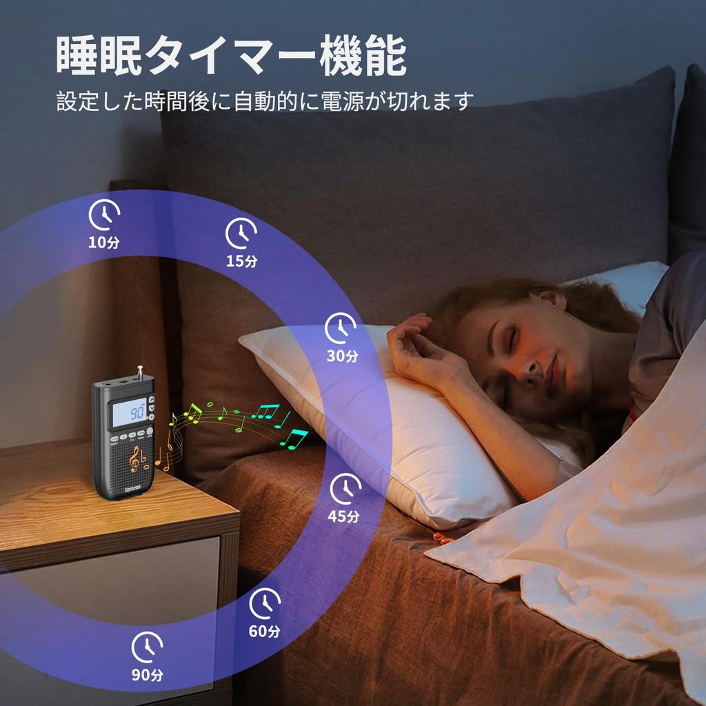 [Удобный таймер сна] Засыпайте под ваши любимые радиостанции или музыку. Установите таймер сна для автоматического отключения через 90, 60, 45, 30, 15 или 10 минут, обеспечивая спокойный ночной сон без беспокойства об отключении.. уведомление: Это радио имеет много функций, поэтому, пожалуйста, внимательно прочитайте инструкцию по эксплуатации перед использованием.
