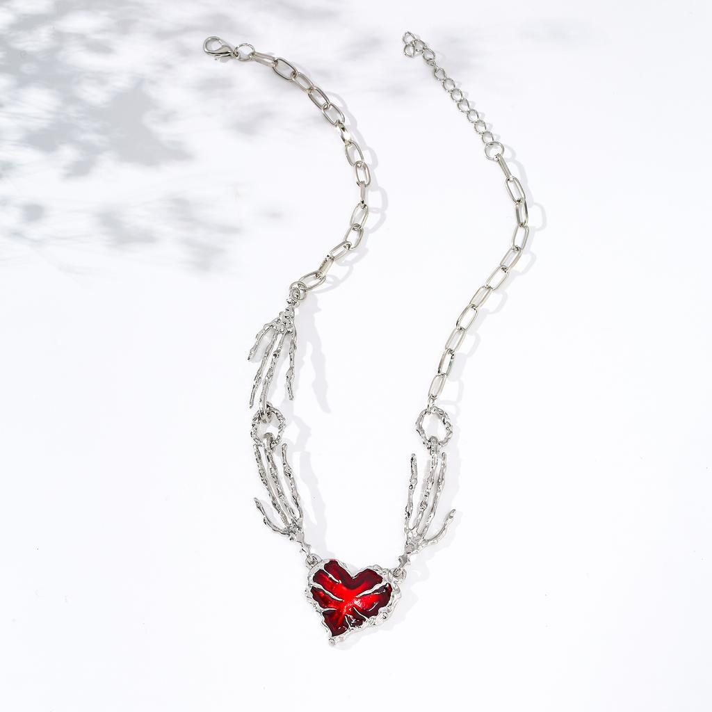 Сладкое и Крутое Ожерелье с Красным Сердцем и Когтями Призрака, Нишевый Дизайн, Преувеличенный Панк-Стиль, Цепочка для Ключицы