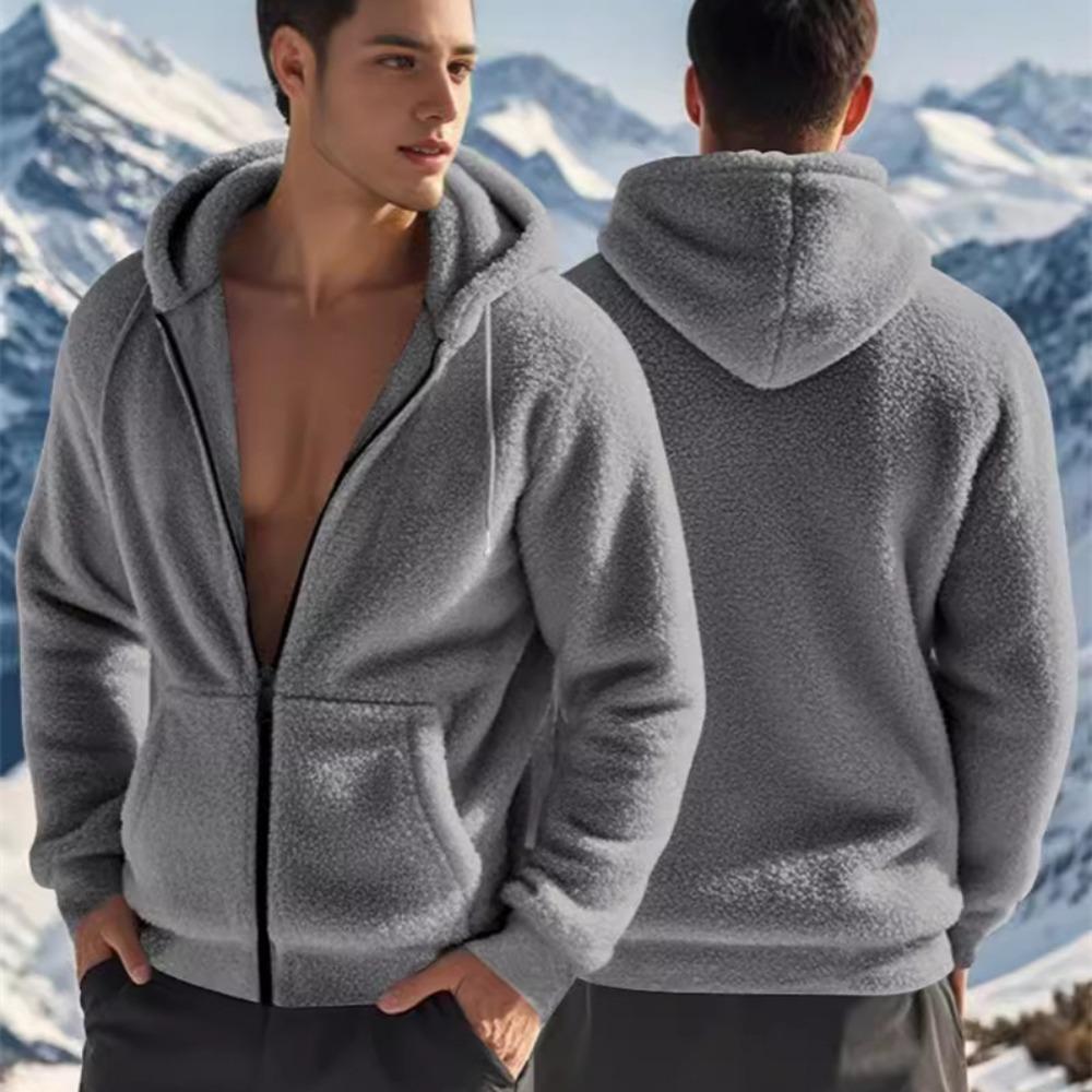 2025 Американский стиль Осень/Зима Куртка Мужская Толстая Теплая Двусторонняя Флисовая Куртка Свободный Кардиган на Молнии Повседневная Куртка с Капюшоном