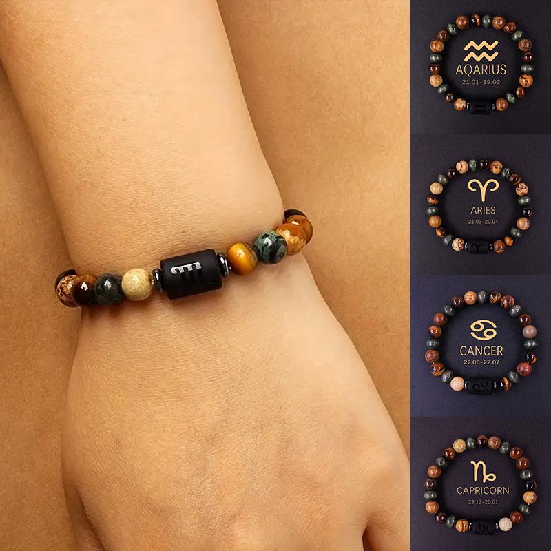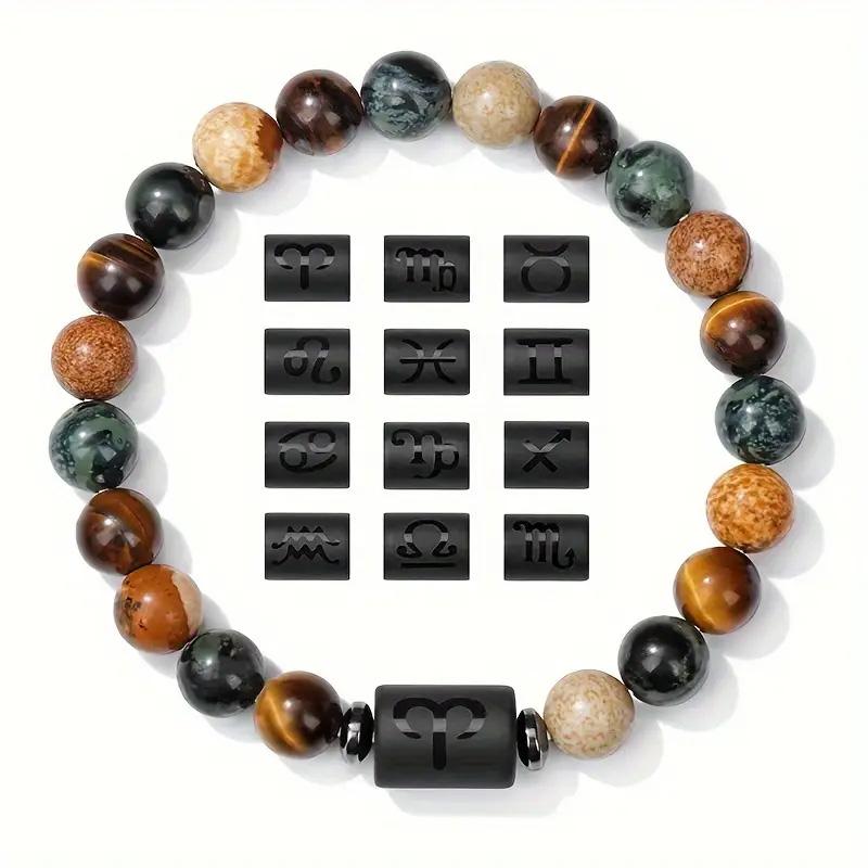 1 шт. 12 знаков зодиака для друзей, влюбленных, браслет из бусин из камня с полированным натуральным камнем, регулируемый, для пар, дружба, минималистичный