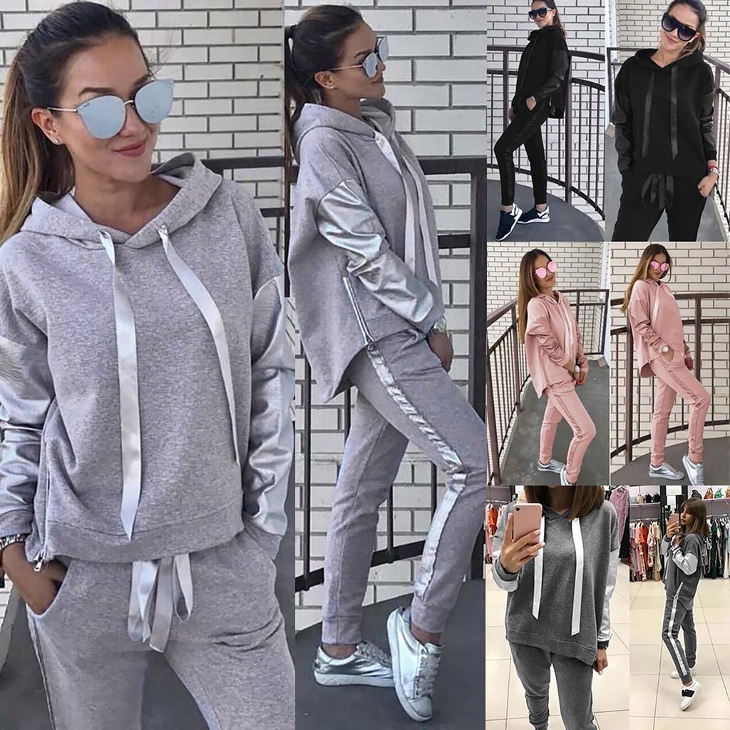2шт / комплект женщин сплошной цвет с капюшоном толстовка и брюки спортивный костюм спортивный костюм — купить товар онлайн с бесплатной доставкой по всему миру!