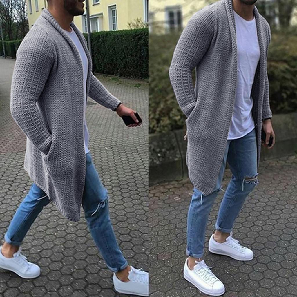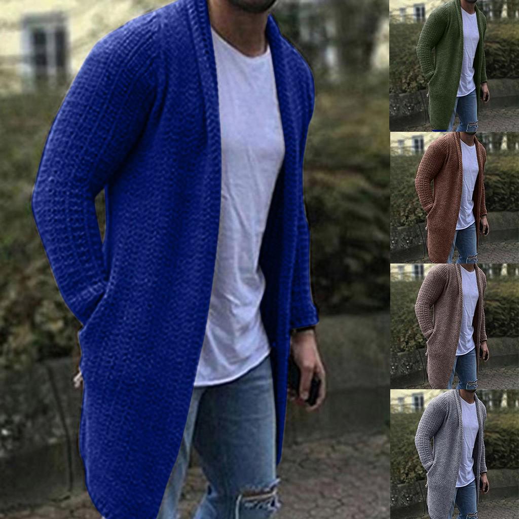 Мужской повседневный однотонный кардиган уличная одежда с длинным рукавом вязаные свитера пальто