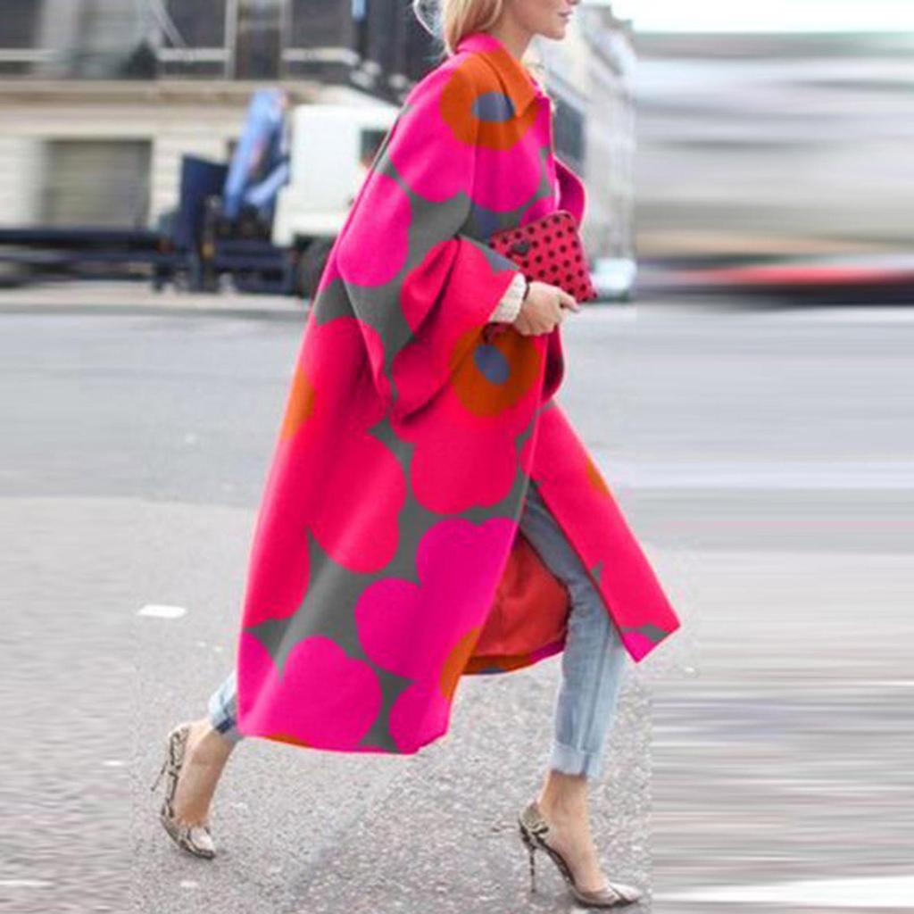 Модная женская карманная куртка с принтом, верхняя одежда, кардиган, пальто, длинный плащ