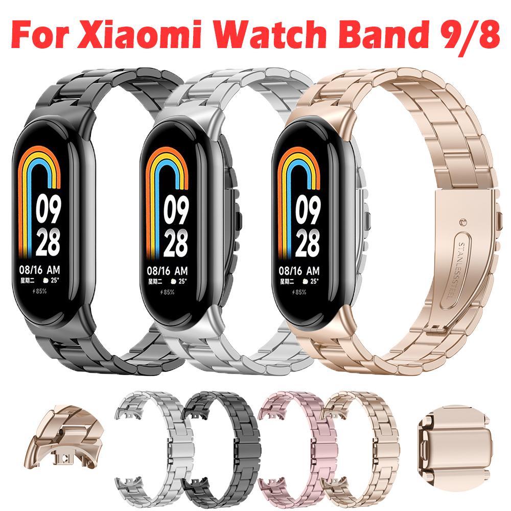 Металлический ремешок для Xiaomi Mi Band 9, браслет из нержавеющей стали, тонкий деловой ремешок для Xiaomi Band 8, спортивный браслет, аксессуары