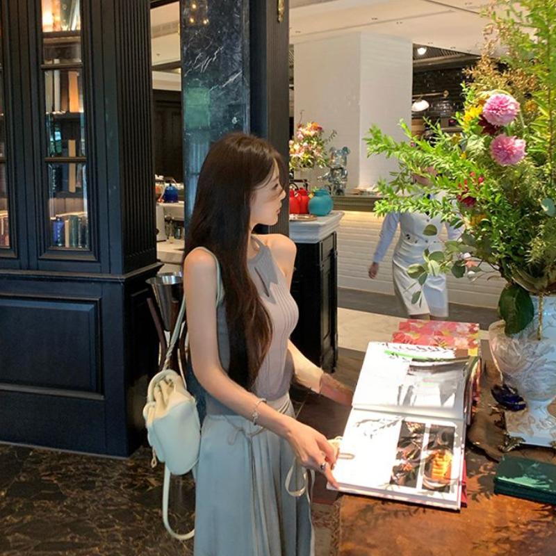 Топ-майка женская с вырезами, базовый слой, весна-лето, нижнее белье, сексуальный, милый, для горячих девушек, вязаный топ без рукавов из ледяного шелка