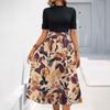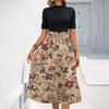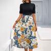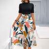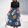 Женское модное повседневное платье с коротким рукавом и круглым вырезом с цветочным принтом и элегантным темпераментом