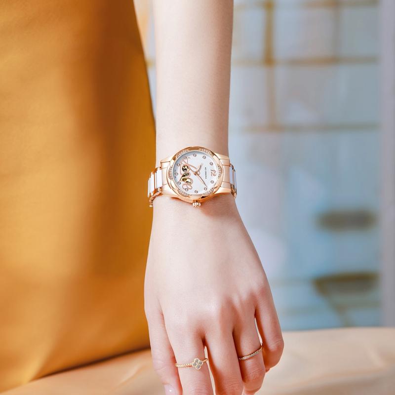 Элегантный Дизайн Женские Часы Люксовый Топ Бренд Керамические Женские Скелетоны Женские Автоматические Механические Часы
