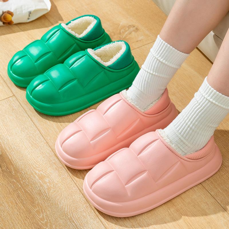 Зимние платформенные хлопковые туфли женские новые домашние с каблуком-сумкой водонепроницаемая верхняя одежда пара плюшевые хлопковые тапочки мужские
