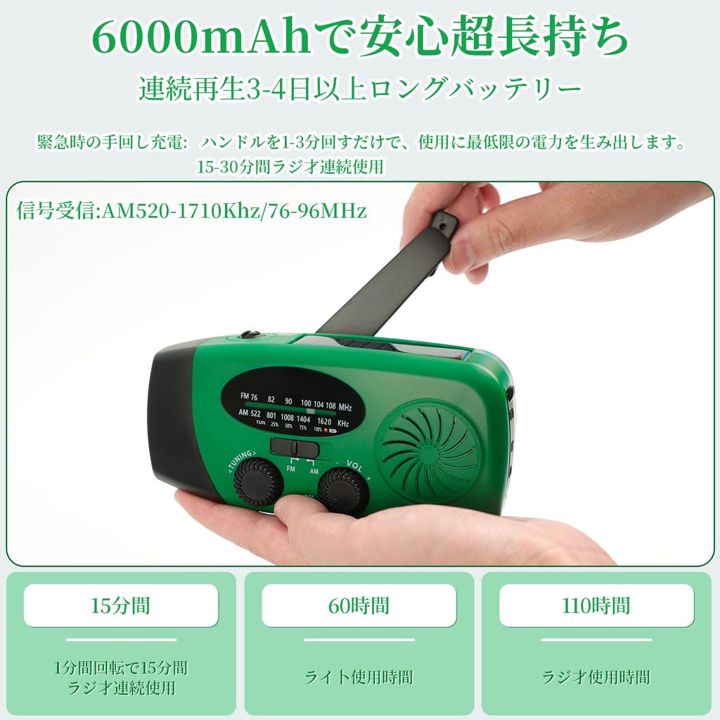 Многофункциональное аварийное радио с фонариком, портативное, высокая емкость 6000 мАч, зарядка смартфона, зарядка ручным приводом, солнечная зарядка, светодиодная подсветка,