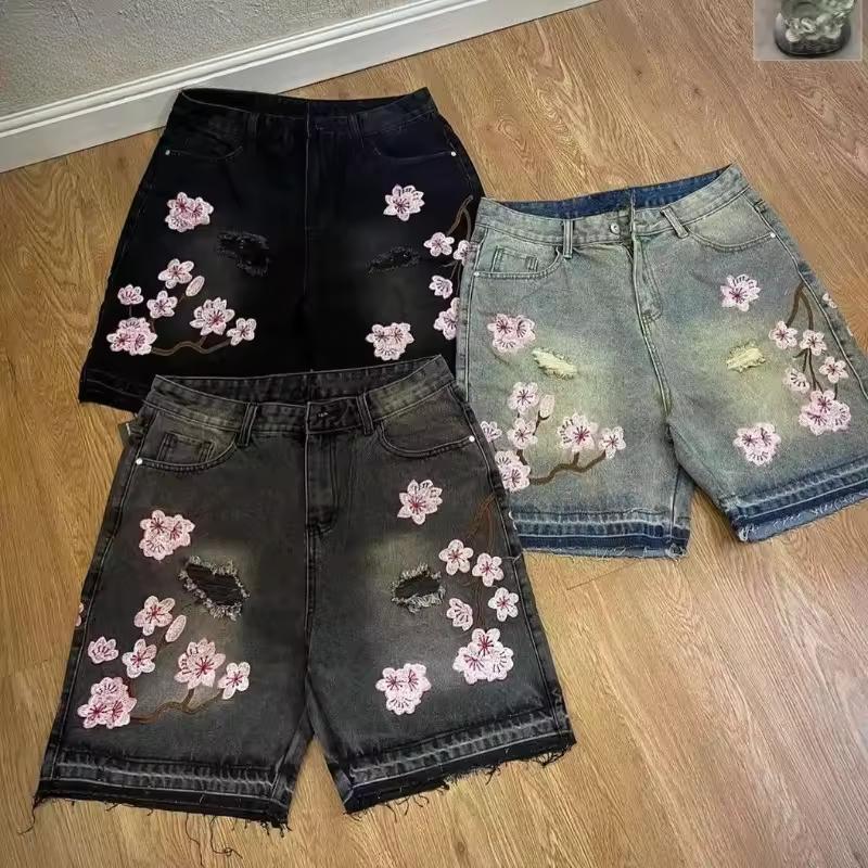 ZYLLO Готические Мужские Женские Джинсовые Шорты с Вышивкой Сакуры Y2K Джинсы Харадзюку Хип-Хоп Ретро Мешковатые Шорты Модные Повседневные Брюки — купить товар онлайн с бесплатной доставкой по всему миру!