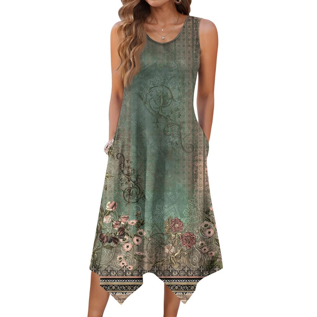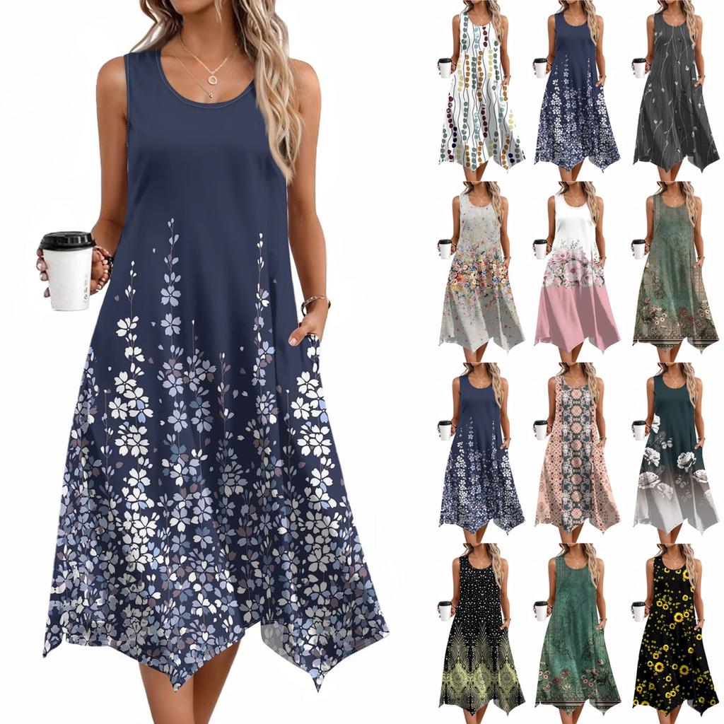 Женские повседневные летние платья без рукавов, весеннее платье-кружево с оборками и цветочным принтом в стиле бохо для коктейльной вечеринки