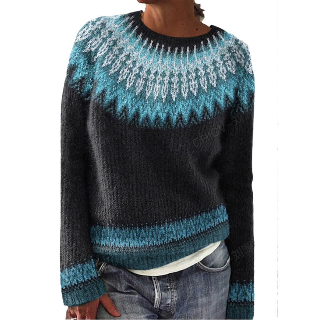 Женский модный повседневный свитер с круглым вырезом и принтом, свободный свитер с длинными рукавами