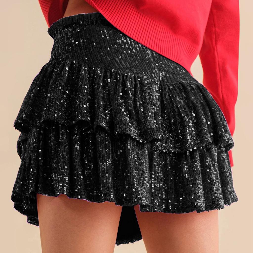 Женская модная однотонная плиссированная юбка миди с пайетками, сексуальная короткая юбка