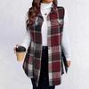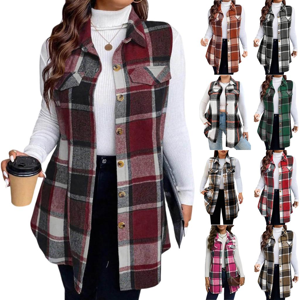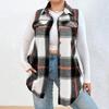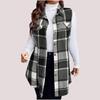 Женская модная куртка-жилет без рукавов средней длины в клетку с воротником большого размера — купить товар онлайн с бесплатной доставкой по всему миру!
