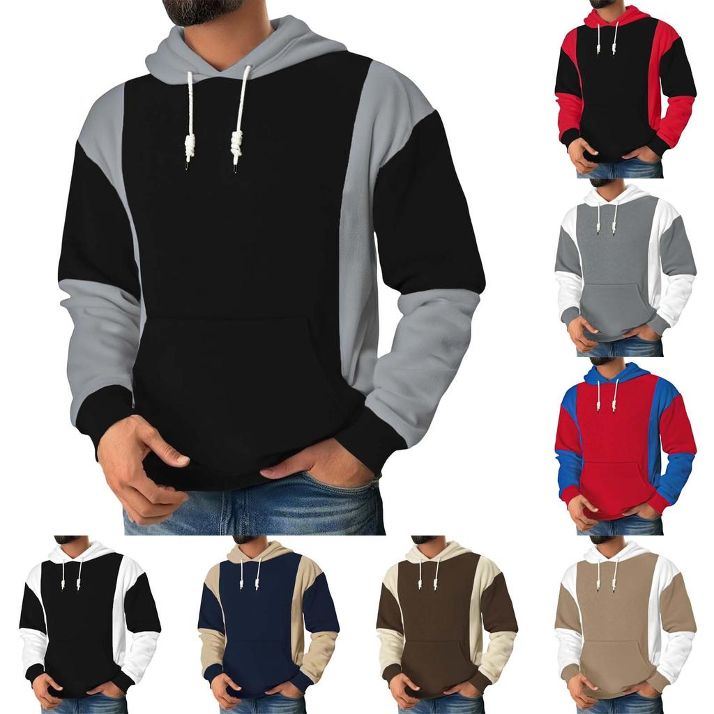 Мужская повседневная толстовка с капюшоном, длинным рукавом, в стиле пэчворк, с цветными блоками — купить товар онлайн с бесплатной доставкой до всему миру!