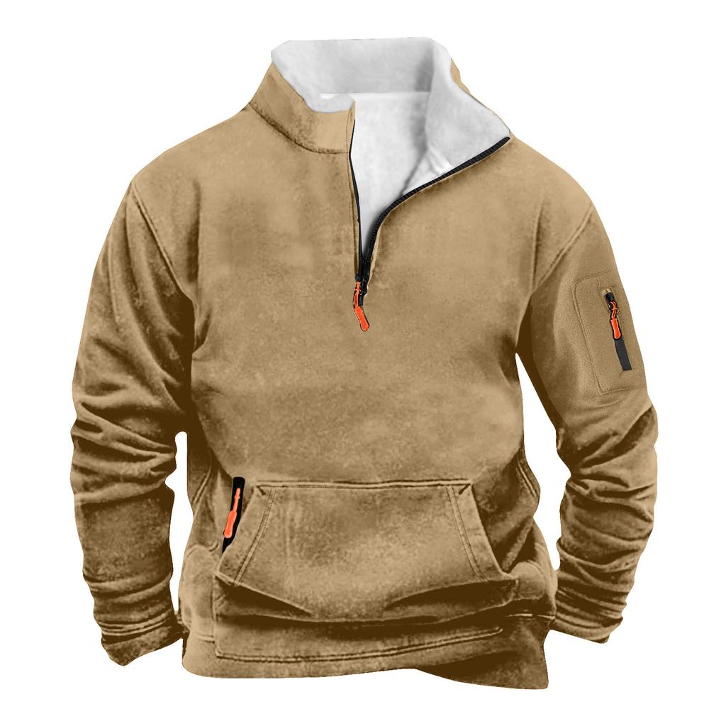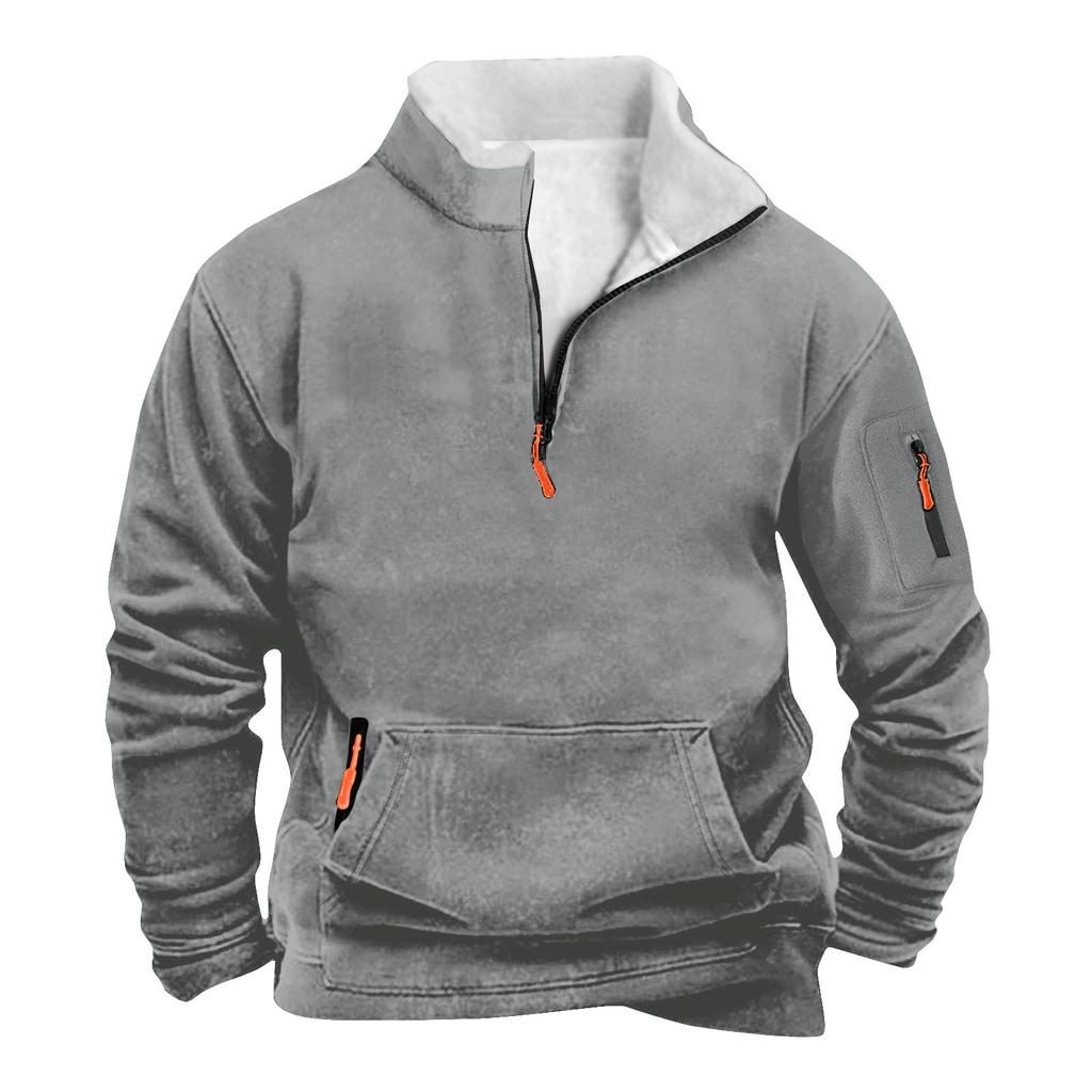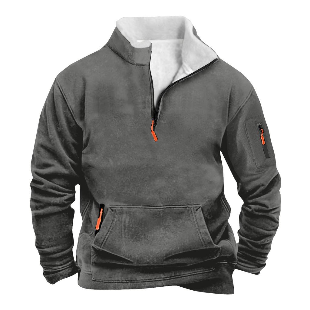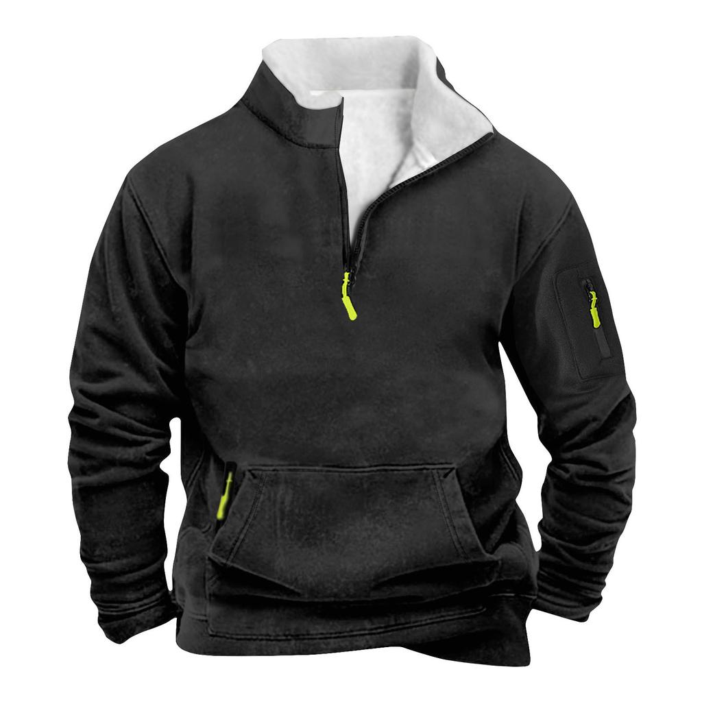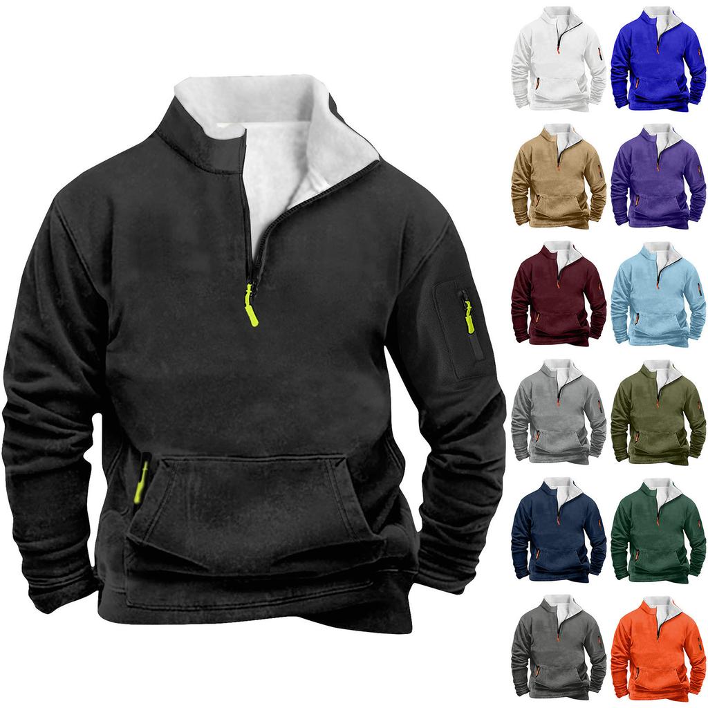 Мужской свитшот с карманом на молнии и половинной молнией, мужской спортивный свитшот большого размера в стиле кэжуал