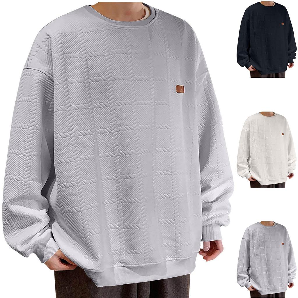 Мужские текстурированные трикотажные рубашки с круглым вырезом, повседневные блузки с длинным рукавом, топы, свободные базовые рубашки