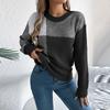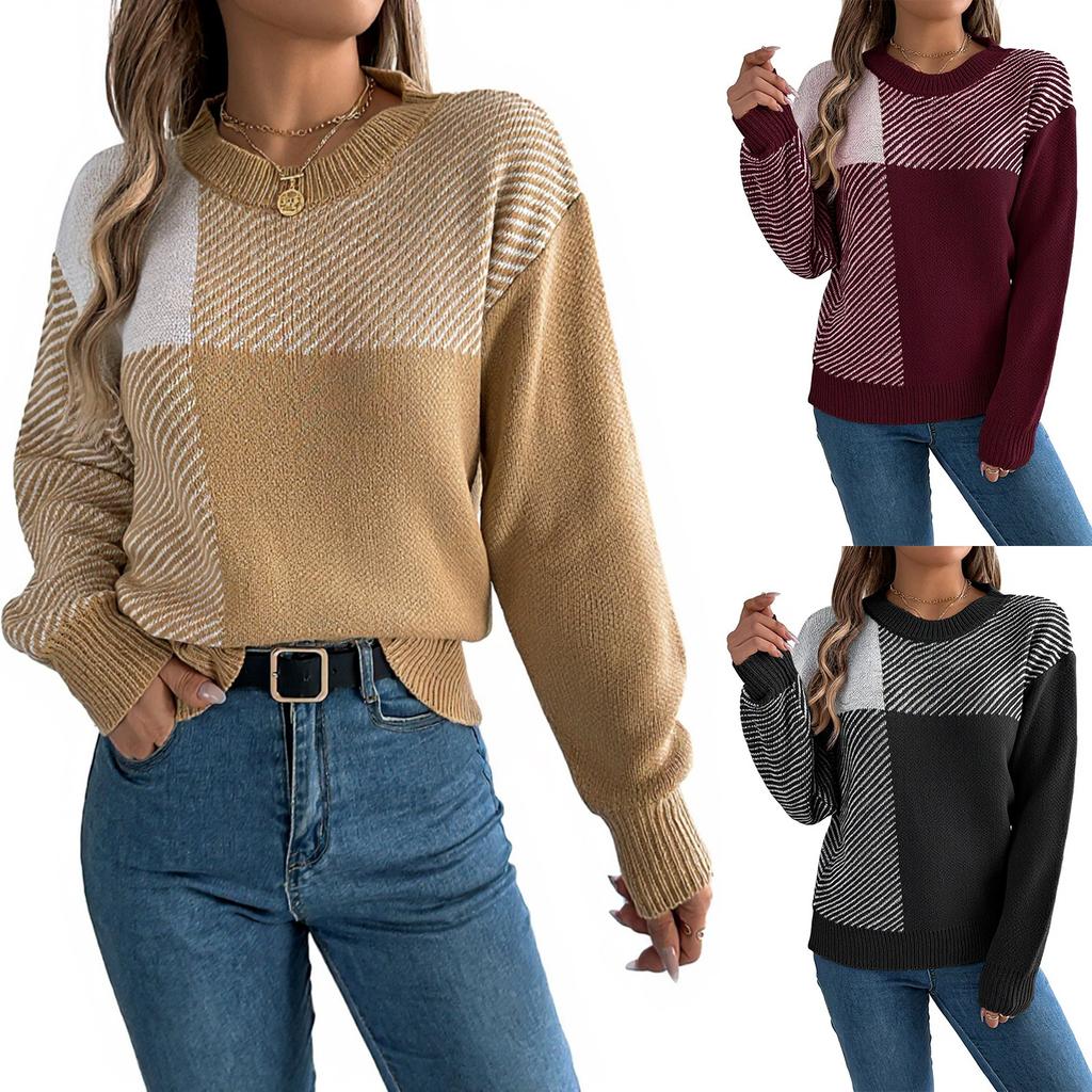 Женский модный повседневный пуловер с контрастным клетчатым узором и длинными рукавами