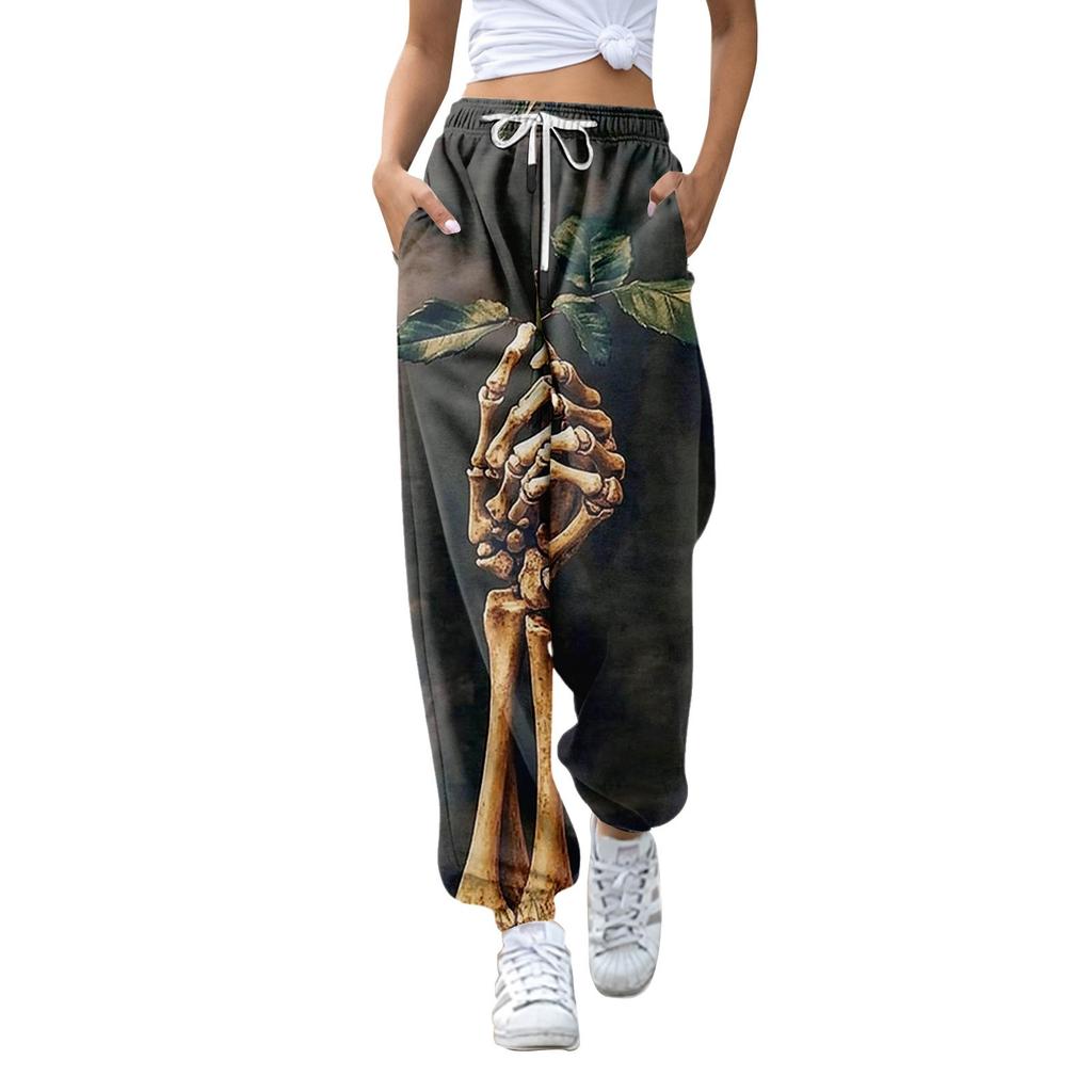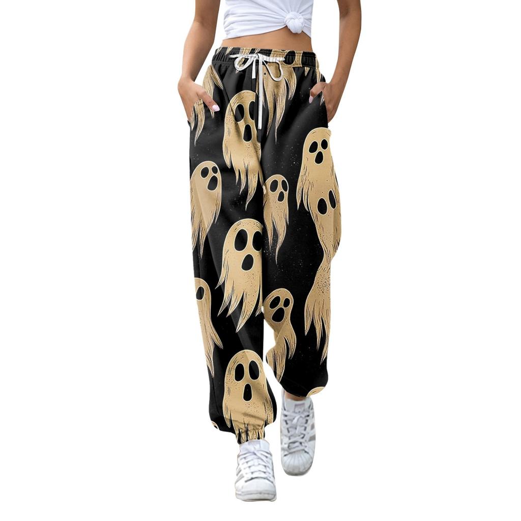 Женские модные Хэллоуин свободные спортивные брюки повседневного стиля однотонные с кулиской на талии