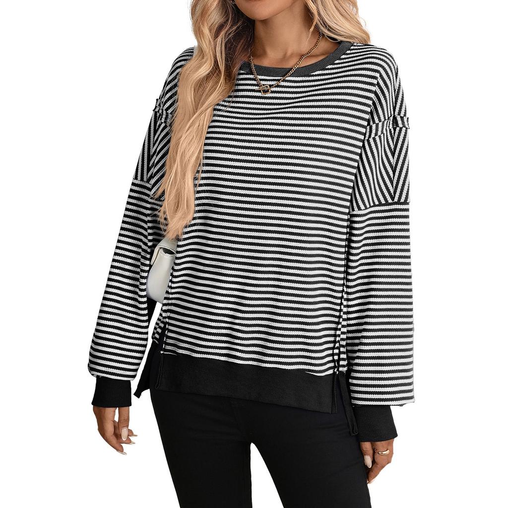 Женский лонгслив с круглым вырезом, в полоску, универсальный, повседневный, свободный