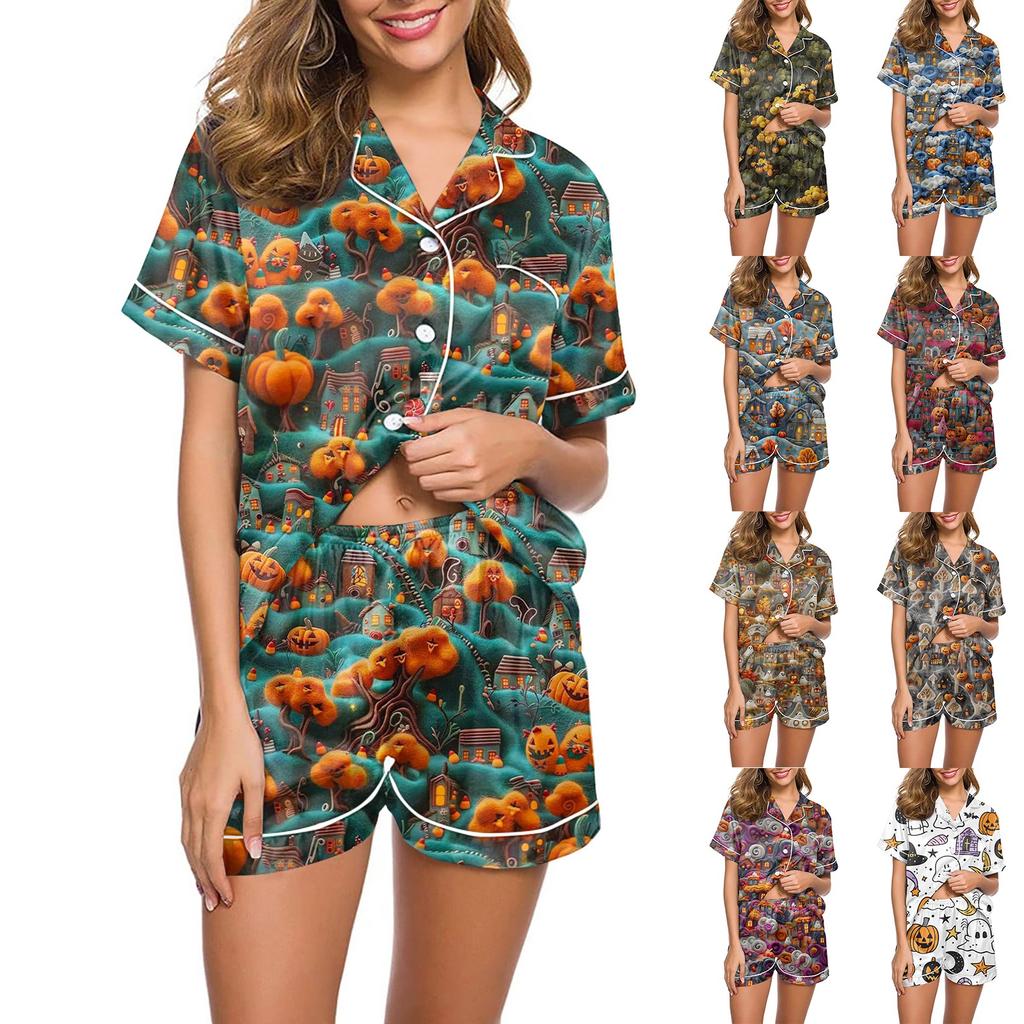 Женский повседневный модный домашний костюм с принтом на Хэллоуин, с коротким рукавом — купить товар онлайн с бесплатной доставкой до всему миру!