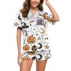 Женский повседневный модный домашний костюм с принтом на Хэллоуин, с коротким рукавом