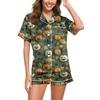 Женский повседневный модный домашний костюм с принтом на Хэллоуин, с коротким рукавом