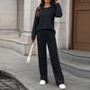 Женский модный и удобный трикотажный комплект для отдыха с круглым вырезом, длинными рукавами и брюками с начесом