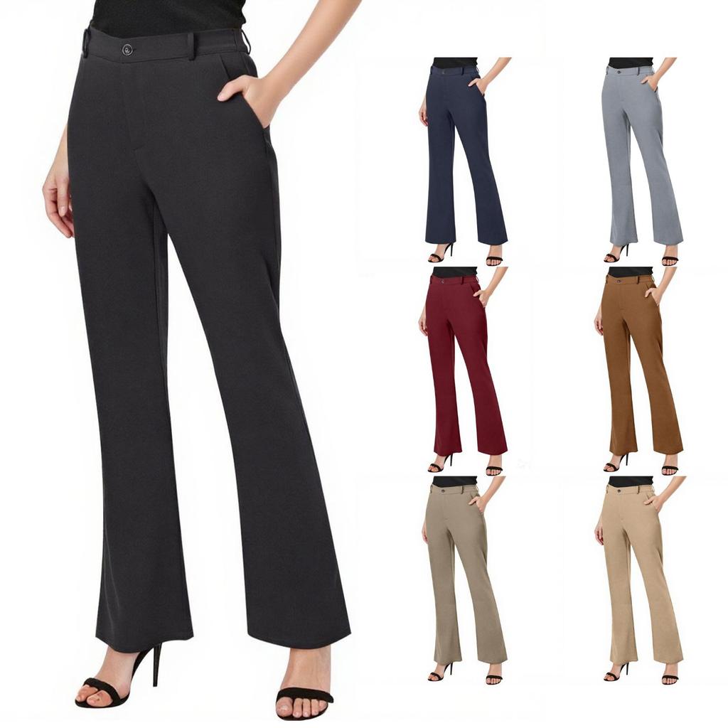 Женские нарядные брюки для работы, прямые брюки, повседневные брюки-клеш с карманами