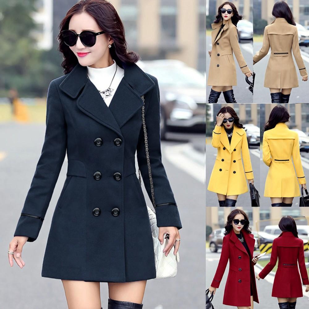 Женское шерстяное двубортное пальто Элегантная куртка с длинным рукавом для работы Модная куртка — купить товар онлайн с бесплатной доставкой по всему миру!