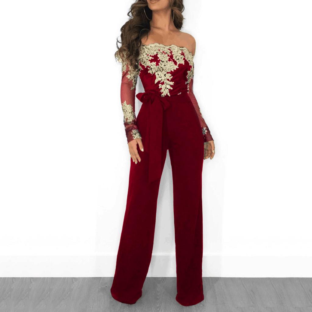 Женский повседневный кружевной комбинезон с открытыми плечами, комбинезон с широкими штанинами — купить товар онлайн с бесплатной доставкой по всему миру!