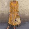 Женское хлопковое платье из конопли со средним рукавом и винтажным принтом, v-образным вырезом, из двух частей