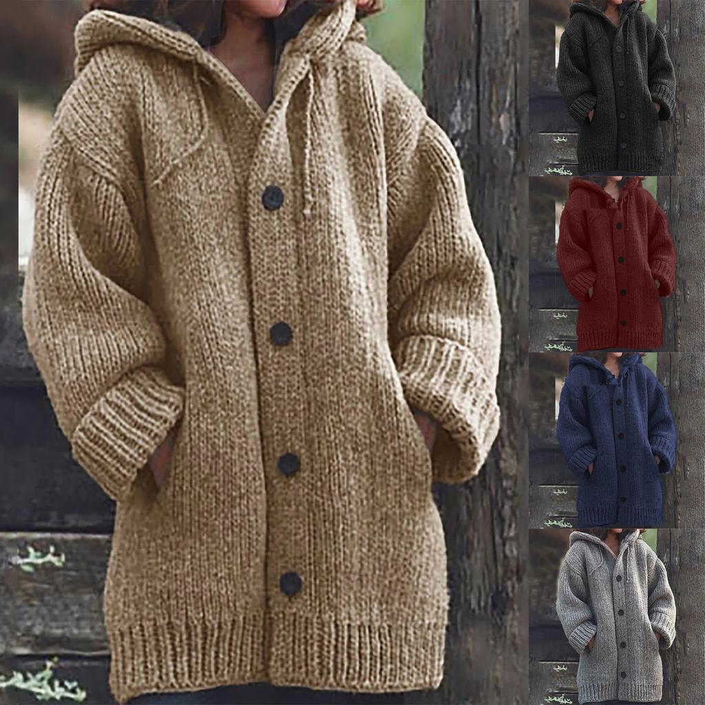 Женский и зимний однотонный длинный рукав карман шаль свободный кардиган вязаный свитер женский