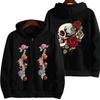 Женские повседневные толстовки с капюшоном на молнии Осень-зима Новые готические черепа с розами позвоночник Темная эстетика Толстовка Пуловер Спортивная одежда на молнии
