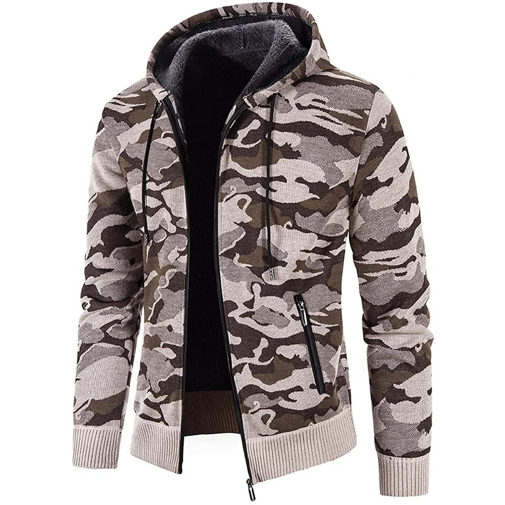 Мужская мода для отдыха с длинным рукавом теплая куртка с капюшоном с камуфляжным принтом Топ