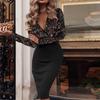 Женское сексуальное модное платье с глубоким V-образным вырезом и блестками, с длинным рукавом и длинным рукавом
