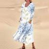 Женское повседневное удобное хлопковое карманное платье с цветочным принтом и рукавами три четверти