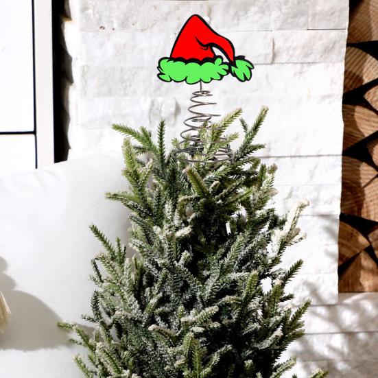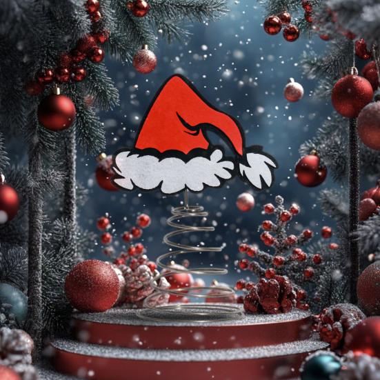 Праздничный наконечник на елку в виде шапки Санты: Этот рождественский топпер в форме шляпы, изготовленный из высококачественного железа и фетра, одновременно яркий и милый, он украсит любую елку своим декоративным очарованием.
