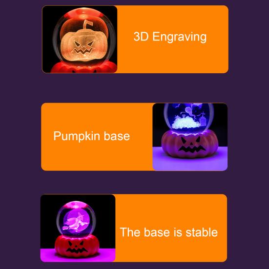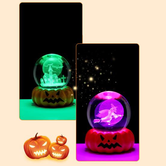 Атмосферное освещение: Создайте настроение с нашим смоляным ночником в виде хрустального шара с тыквой. Успокаивающее светодиодное свечение создает теплую атмосферу, идеально подходящую для вечеринок на Хэллоуин, киноночей или уютных вечеров дома.